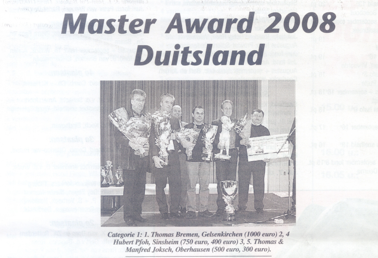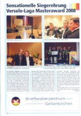 Insgesamt plazierten sich unsere Tauben sieben mal unter die Top 16 von Deutschland im Versele-Masteraward 2008 in den Kategorien Kurz- und Mittelstrecke.